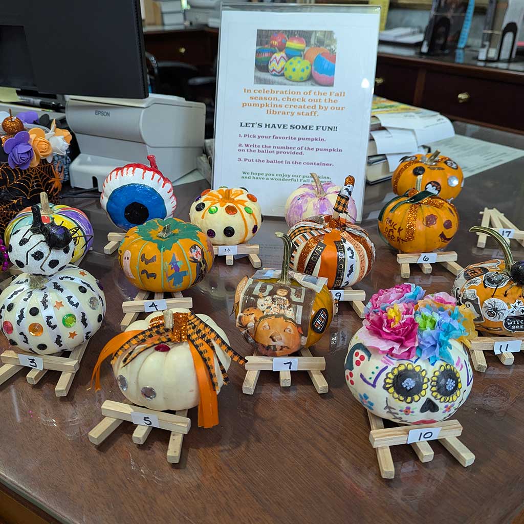 Fall Pumpkin DisplayCheck out our fall pumpkins at the Circulation Desk, decorated by the staff. Vote for your favorites!Read More